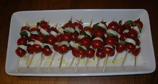 Caprese on a Stick. The presentation could have been a little more interesting, but I like the idea of the skewer. Nothing simpler and fresher than tomato, basil, and mozzarella drizzled with EVOO.